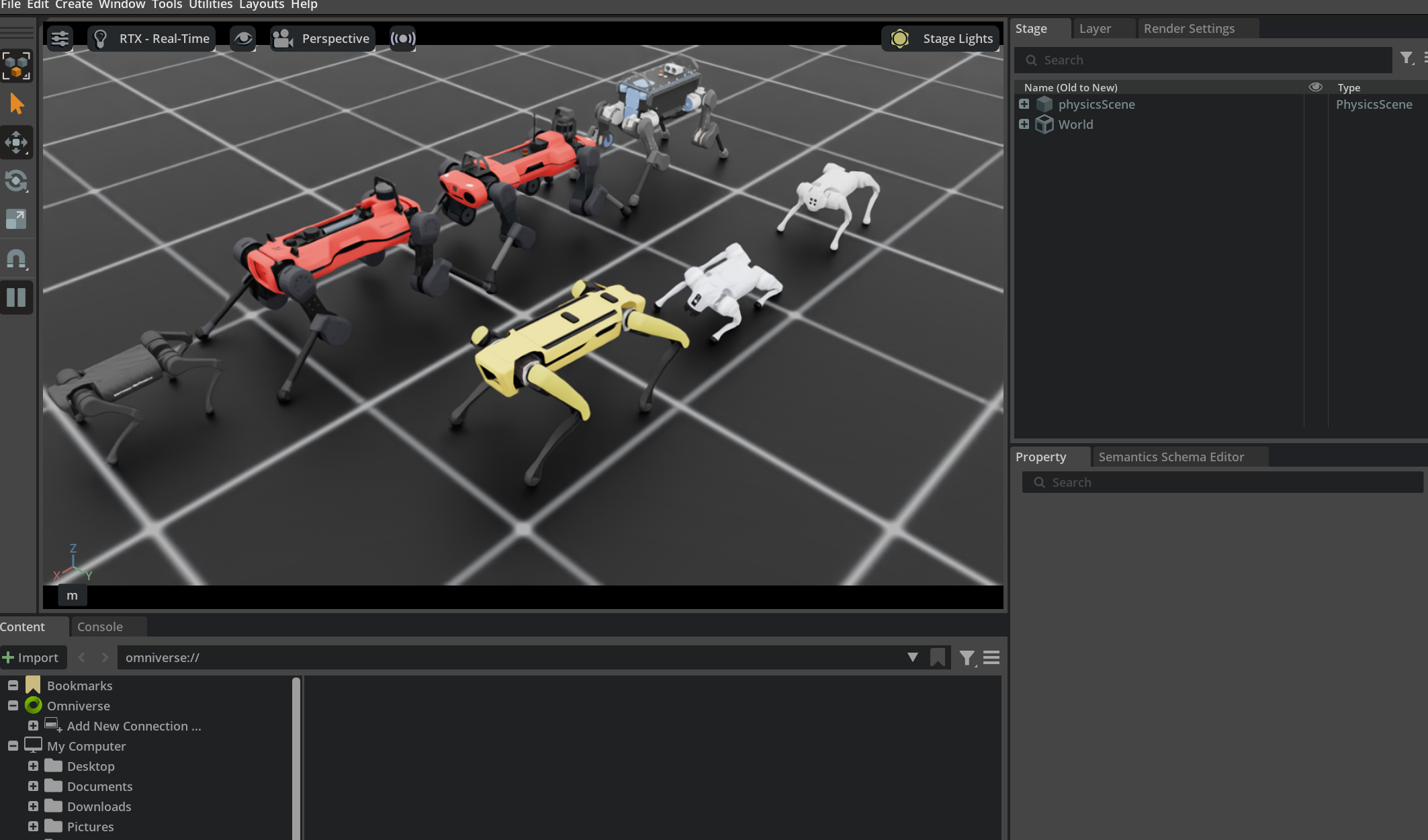 # 运行四足机器人demo ./isaaclab.bat -p scripts/demos/quadrupeds.py